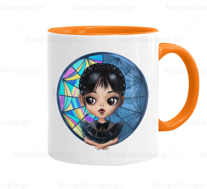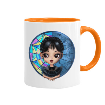 Wednesday big eyes, Κούπα χρωματιστή πορτοκαλί, κεραμική, 330ml