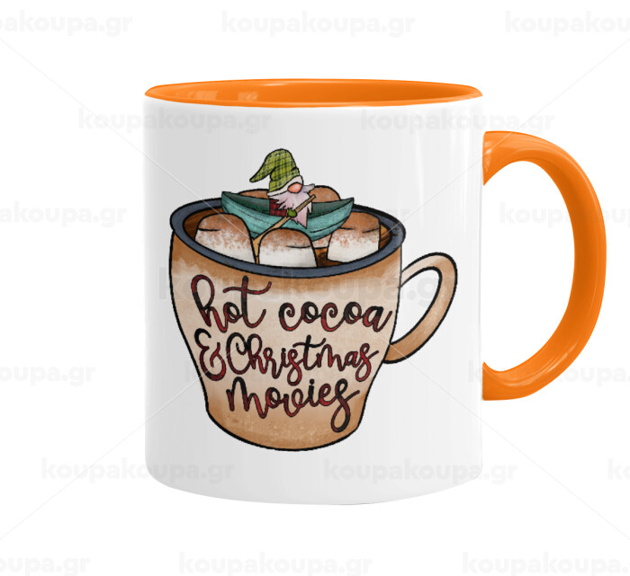 Hot Cocoa And Christmas Movies, Κούπα χρωματιστή πορτοκαλί, κεραμική, 330ml