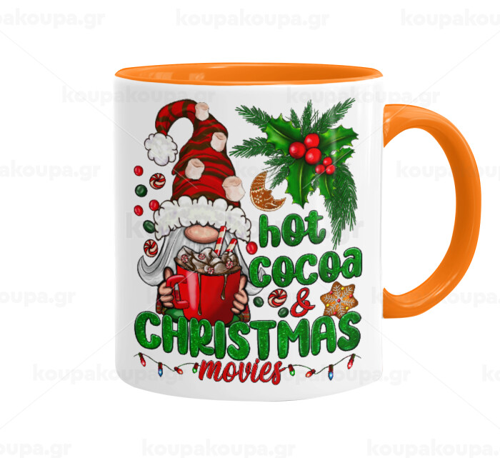 Hot cocoa and Christmas movies, Κούπα χρωματιστή πορτοκαλί, κεραμική, 330ml