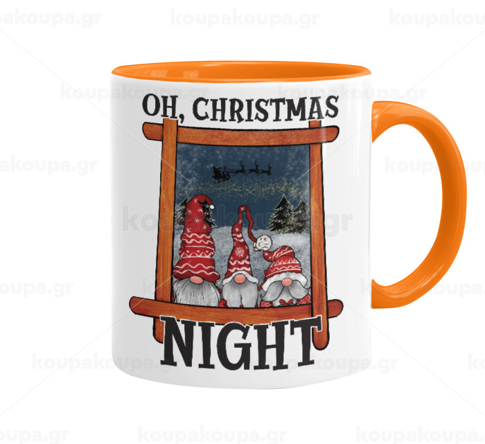 Oh Christmas Night, Κούπα χρωματιστή πορτοκαλί, κεραμική, 330ml
