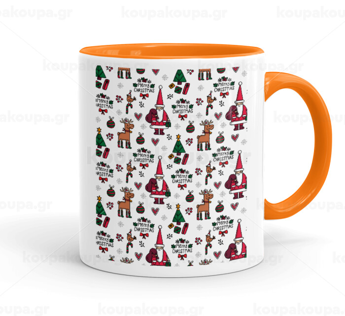 Santas, Deers & Trees, Κούπα χρωματιστή πορτοκαλί, κεραμική, 330ml