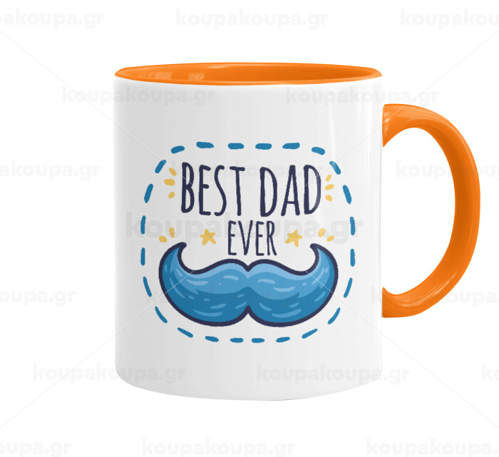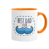 Best dad ever μπλε μουστάκι, Κούπα χρωματιστή πορτοκαλί, κεραμική, 330ml