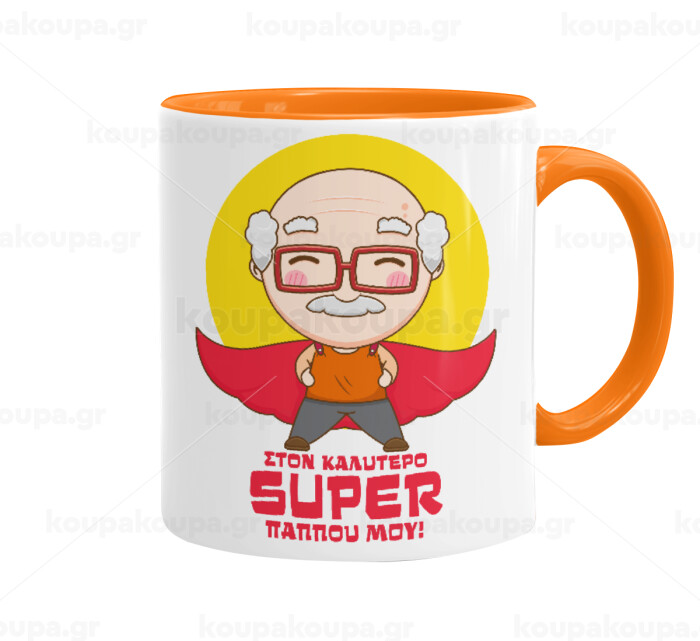 Στον καλύτερο Super παππού μου!, Κούπα χρωματιστή πορτοκαλί, κεραμική, 330ml