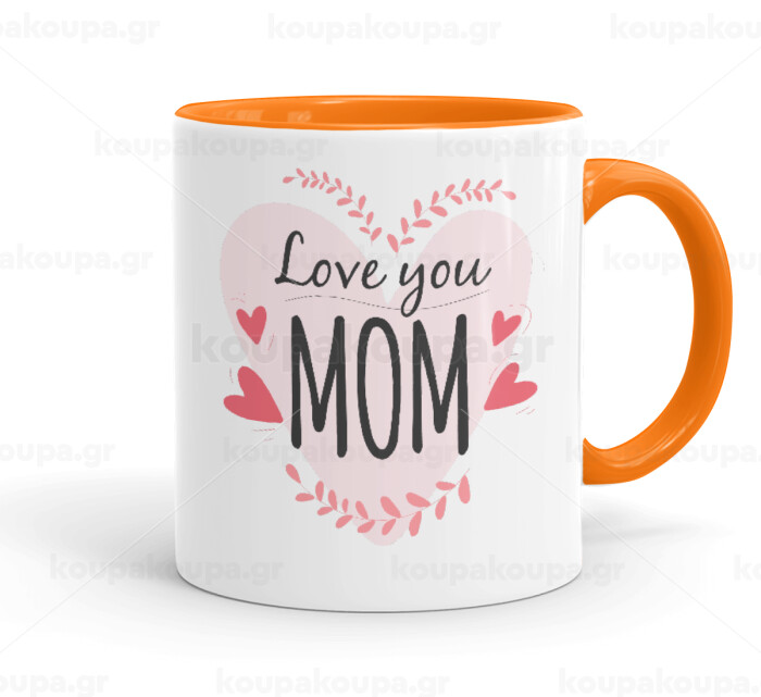 Mother's day I Love you Mom heart, Κούπα χρωματιστή πορτοκαλί, κεραμική, 330ml