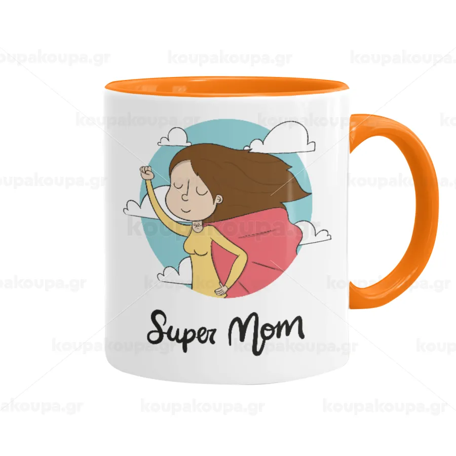 Super mom, Κούπα χρωματιστή πορτοκαλί, κεραμική, 330ml