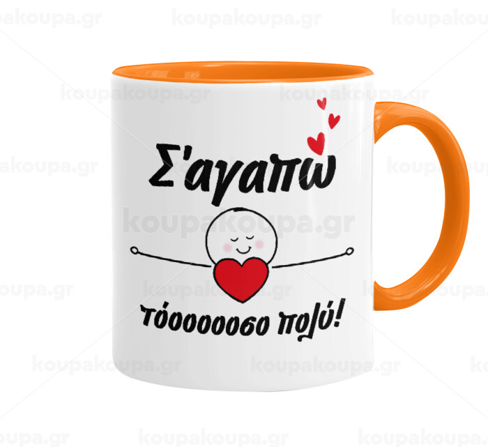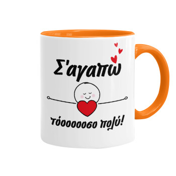 Σ΄αγαπώ τόοοοσο πολύ (Κορίτσι)!!!, Κούπα χρωματιστή πορτοκαλί, κεραμική, 330ml