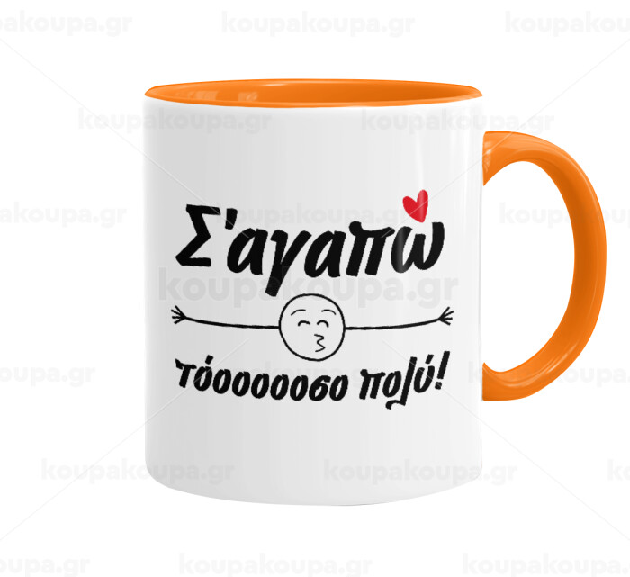 Σ΄ αγαπώ τόοοοοοσο πολύ!!!, Κούπα χρωματιστή πορτοκαλί, κεραμική, 330ml