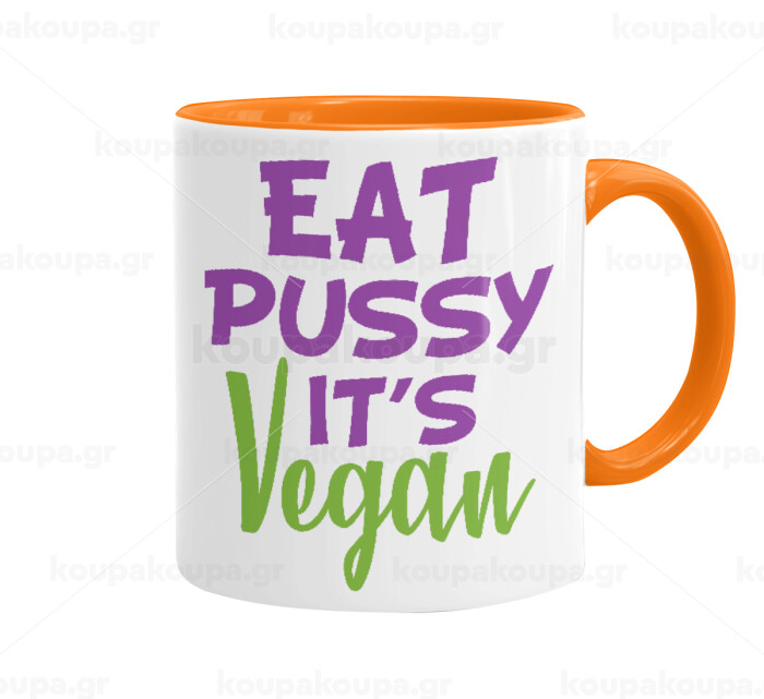 EAT pussy it's vegan, Κούπα χρωματιστή πορτοκαλί, κεραμική, 330ml