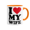 I Love my Wife, Κούπα χρωματιστή πορτοκαλί, κεραμική, 330ml
