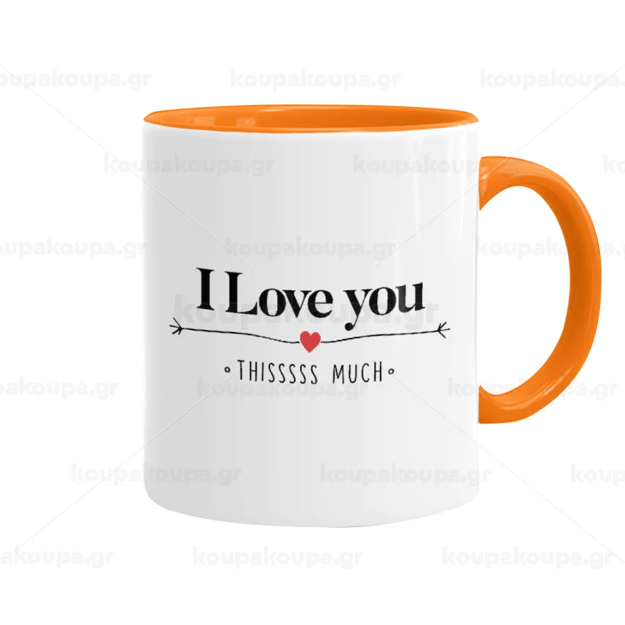 I Love you thisssss much, Κούπα χρωματιστή πορτοκαλί, κεραμική, 330ml