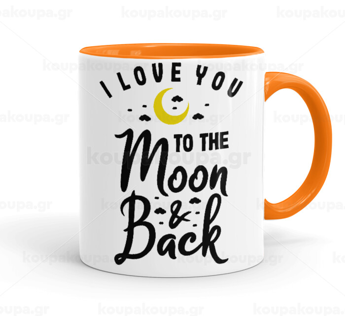 I love you to the moon and back, Κούπα χρωματιστή πορτοκαλί, κεραμική, 330ml