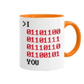 I .... YOU, binary secret MSG, Κούπα χρωματιστή πορτοκαλί, κεραμική, 330ml