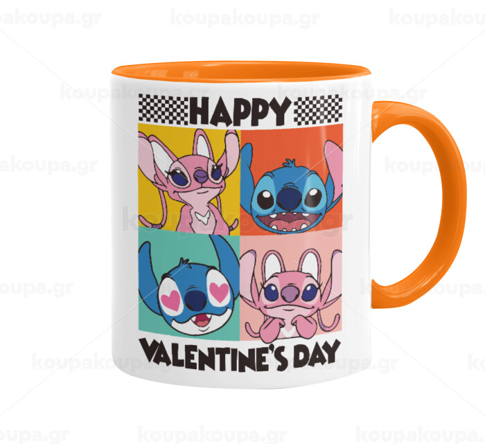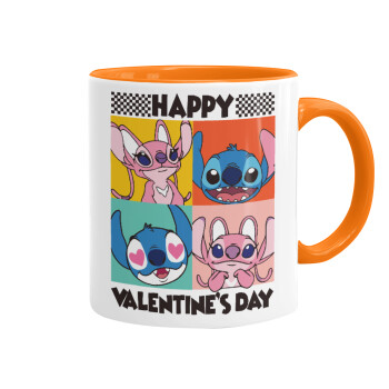 Lilo & Stitch Happy valentines day, Κούπα χρωματιστή πορτοκαλί, κεραμική, 330ml