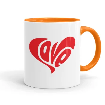 Love, Κούπα χρωματιστή πορτοκαλί, κεραμική, 330ml