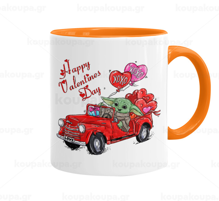 Yoda, happy valentines day (xoxo), Κούπα χρωματιστή πορτοκαλί, κεραμική, 330ml