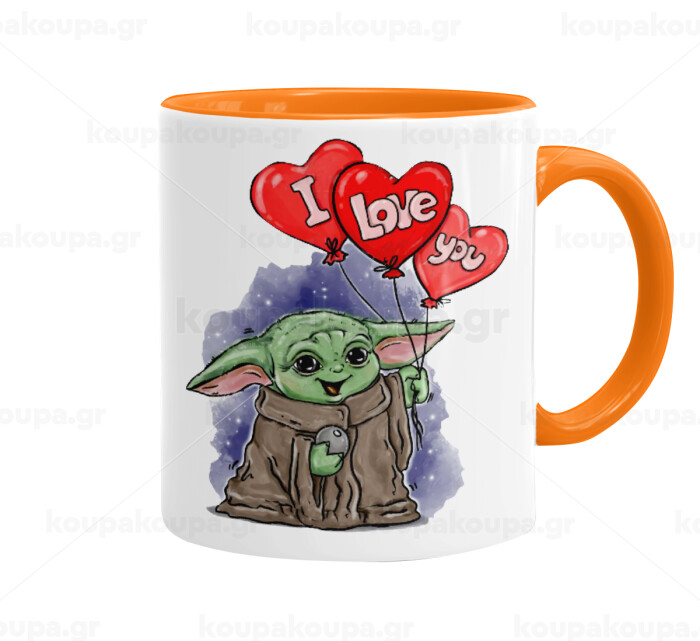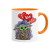 Yoda, i love you, Κούπα χρωματιστή πορτοκαλί, κεραμική, 330ml