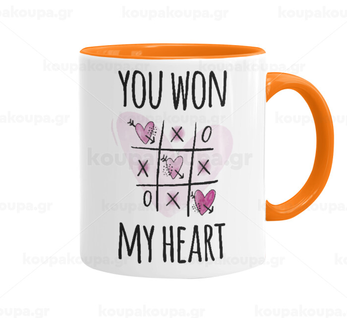 You won my heart, Κούπα χρωματιστή πορτοκαλί, κεραμική, 330ml