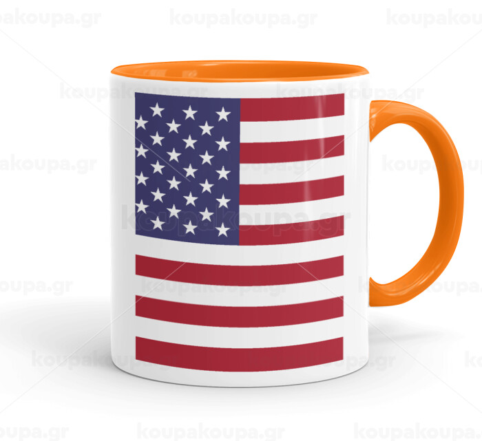 Σημαία Αμερικής, Κούπα χρωματιστή πορτοκαλί, κεραμική, 330ml