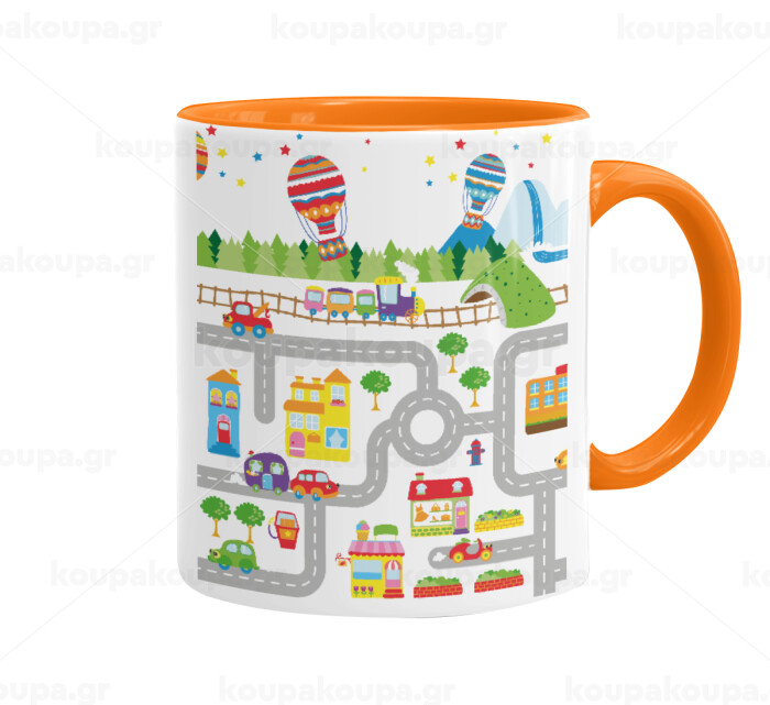 City road track maps, Κούπα χρωματιστή πορτοκαλί, κεραμική, 330ml