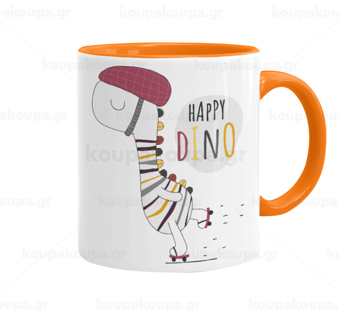 Happy Dino, Κούπα χρωματιστή πορτοκαλί, κεραμική, 330ml
