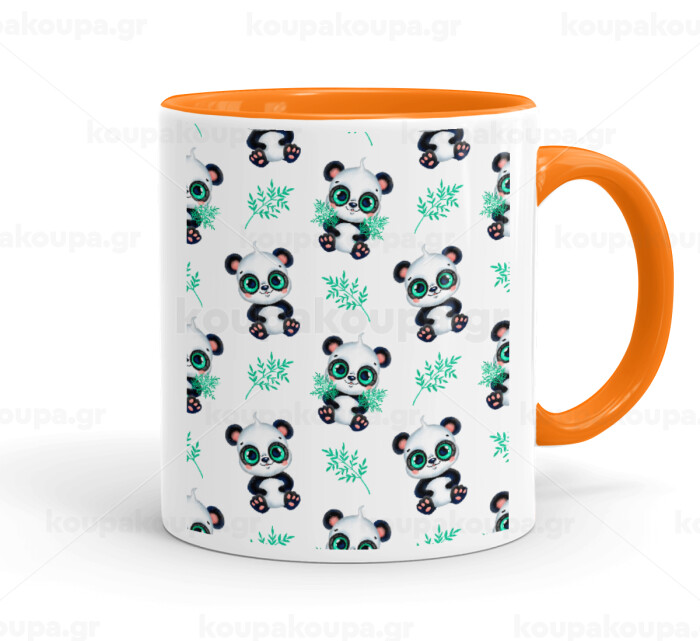 Panda, Κούπα χρωματιστή πορτοκαλί, κεραμική, 330ml