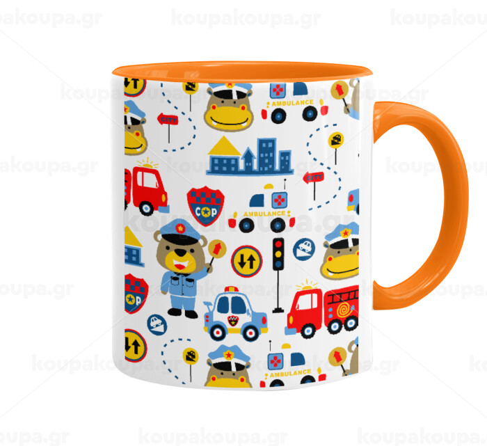 Rescue team cartoon, Κούπα χρωματιστή πορτοκαλί, κεραμική, 330ml