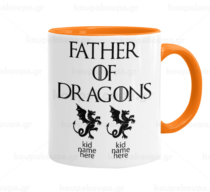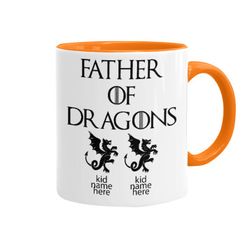 GOT, Father of Dragons (με ονόματα παιδικά), Κούπα χρωματιστή πορτοκαλί, κεραμική, 330ml