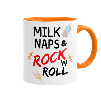milk naps and Rock n' Roll, Κούπα χρωματιστή πορτοκαλί, κεραμική, 330ml