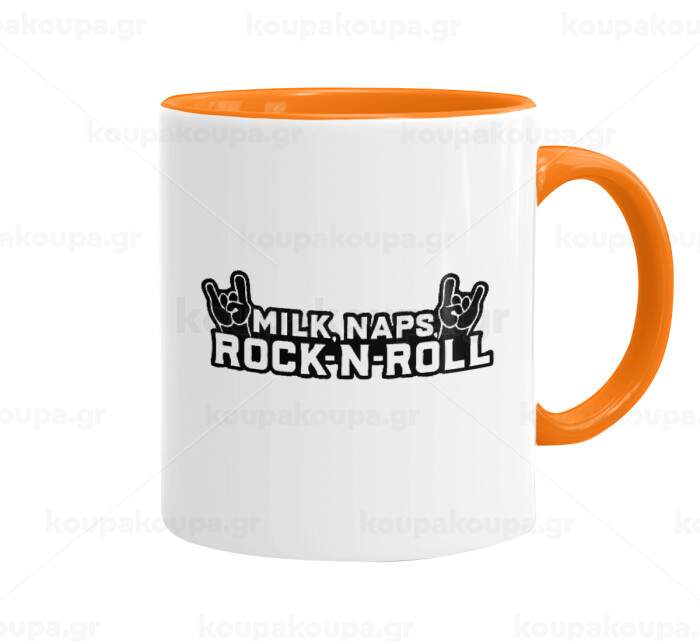 Milk, Naps, Rock N Roll, Κούπα χρωματιστή πορτοκαλί, κεραμική, 330ml