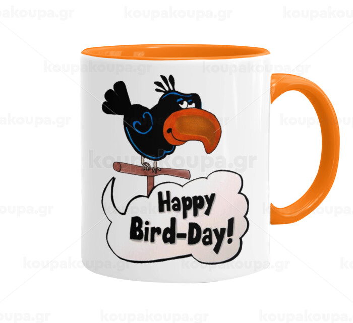 Happy Bird Day, Κούπα χρωματιστή πορτοκαλί, κεραμική, 330ml