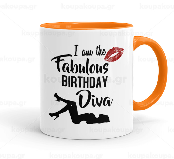 I am the fabulous Birthday Diva, Κούπα χρωματιστή πορτοκαλί, κεραμική, 330ml