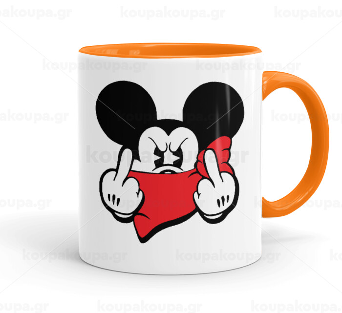 Mickey fuck off, Κούπα χρωματιστή πορτοκαλί, κεραμική, 330ml