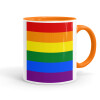 Rainbow flag (LGBT) , Κούπα χρωματιστή πορτοκαλί, κεραμική, 330ml