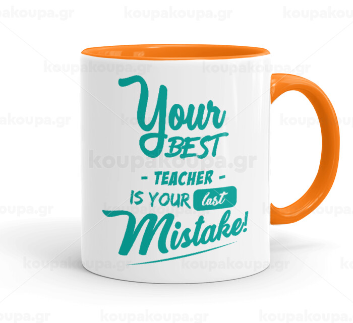 Your best teacher is your last mistake, Κούπα χρωματιστή πορτοκαλί, κεραμική, 330ml