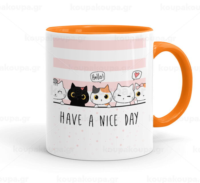 Have a nice day cats, Κούπα χρωματιστή πορτοκαλί, κεραμική, 330ml