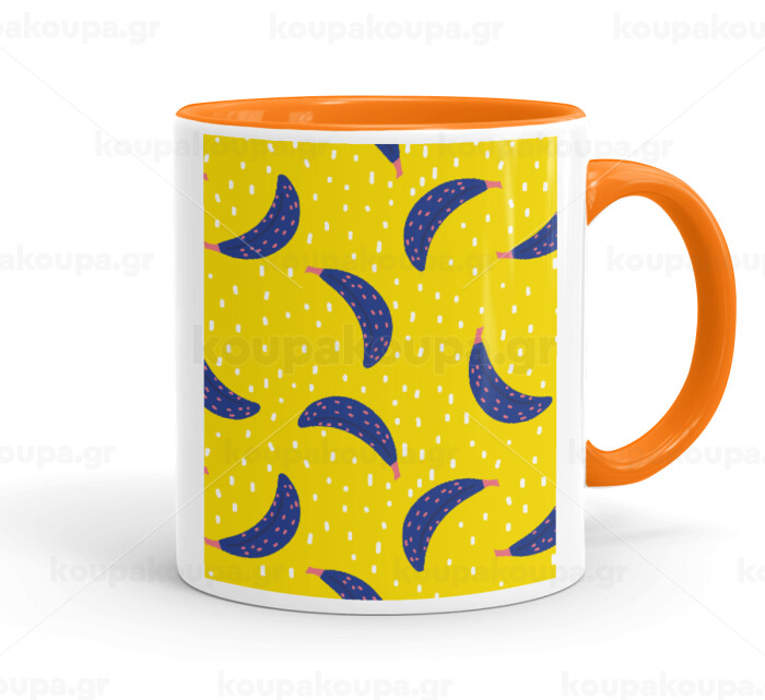 Yellow seamless with blue bananas, Κούπα χρωματιστή πορτοκαλί, κεραμική, 330ml