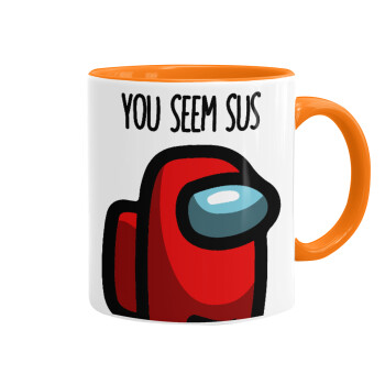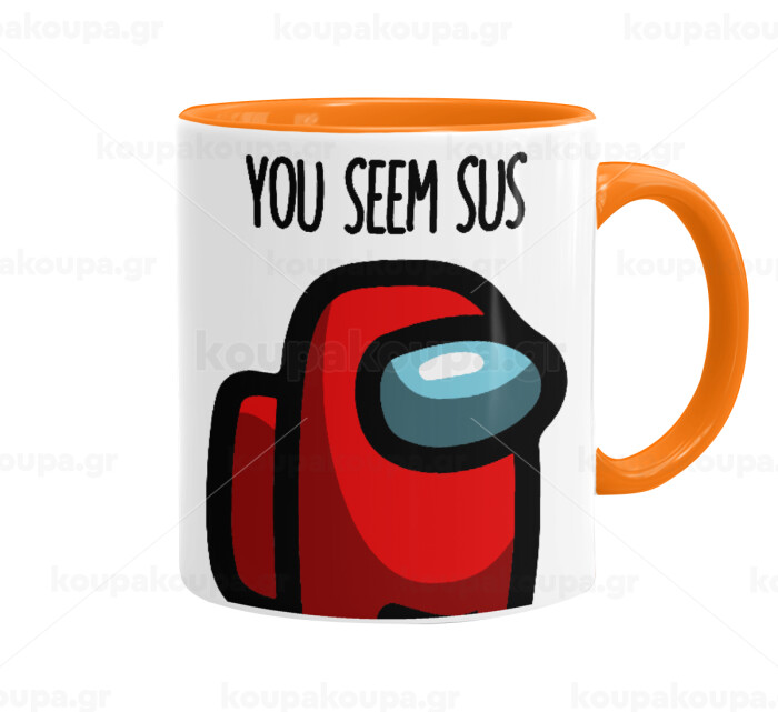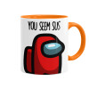Among US, you seem sus, Κούπα χρωματιστή πορτοκαλί, κεραμική, 330ml
