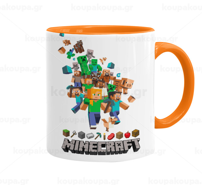 Minecraft adventure, Κούπα χρωματιστή πορτοκαλί, κεραμική, 330ml