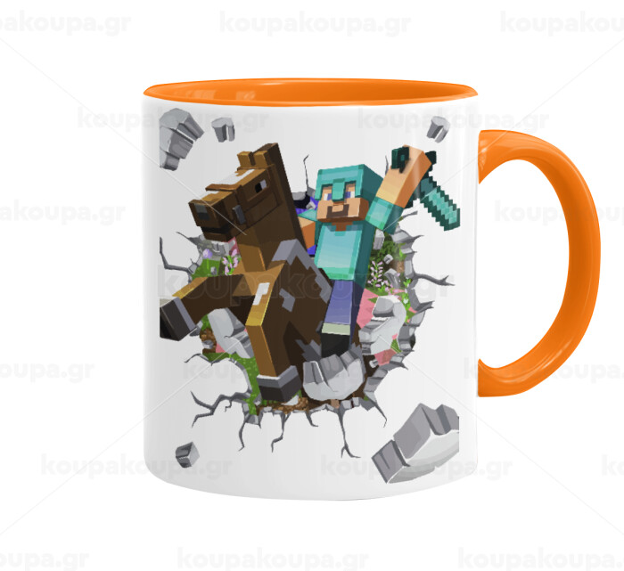Minecraft brick, Κούπα χρωματιστή πορτοκαλί, κεραμική, 330ml
