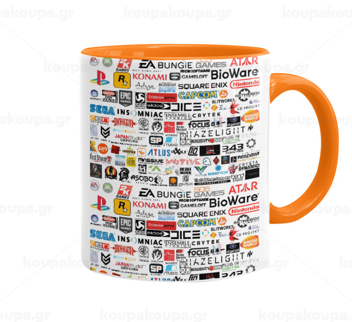 Video Game Studio Logos, Κούπα χρωματιστή πορτοκαλί, κεραμική, 330ml
