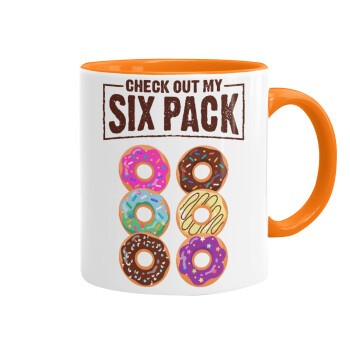 Check Out My Six Pack, Κούπα χρωματιστή πορτοκαλί, κεραμική, 330ml