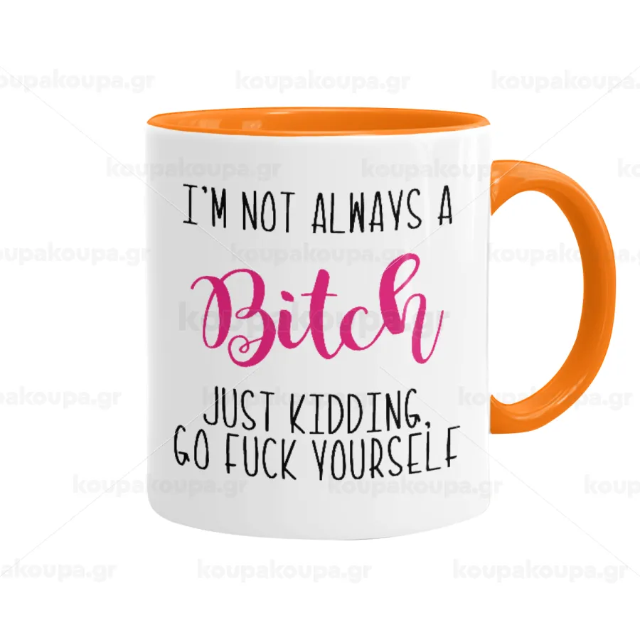 I'm not always a bitch, just kidding go f..k yourself , Κούπα χρωματιστή πορτοκαλί, κεραμική, 330ml