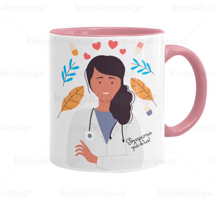 Ευχαριστώ για όλα γιατρέ, Κούπα χρωματιστή ροζ, κεραμική, 330ml