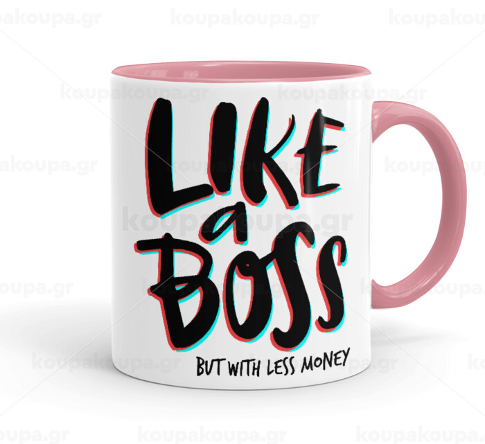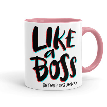 Like a boss, but with less money!!!, Κούπα χρωματιστή ροζ, κεραμική, 330ml