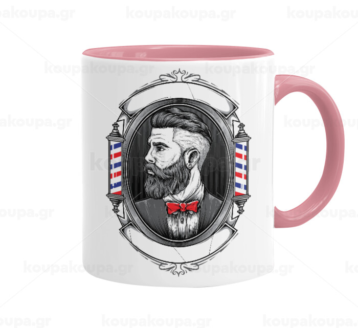 Barber shop, Κούπα χρωματιστή ροζ, κεραμική, 330ml