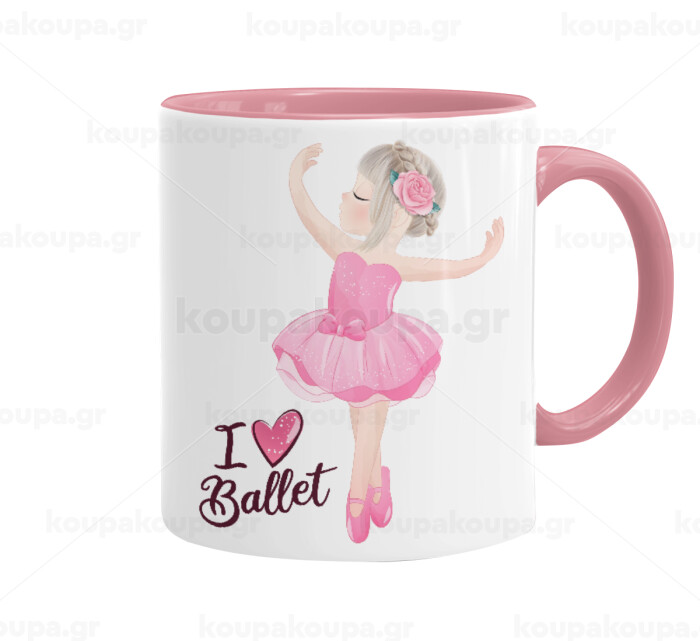 I Love Ballet, Κούπα χρωματιστή ροζ, κεραμική, 330ml