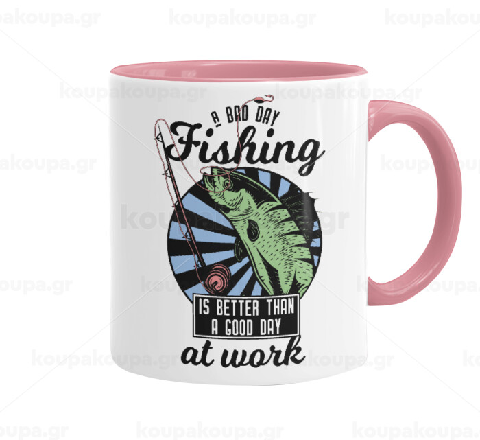 A bad day FISHING is better than a good day at work, Κούπα χρωματιστή ροζ, κεραμική, 330ml