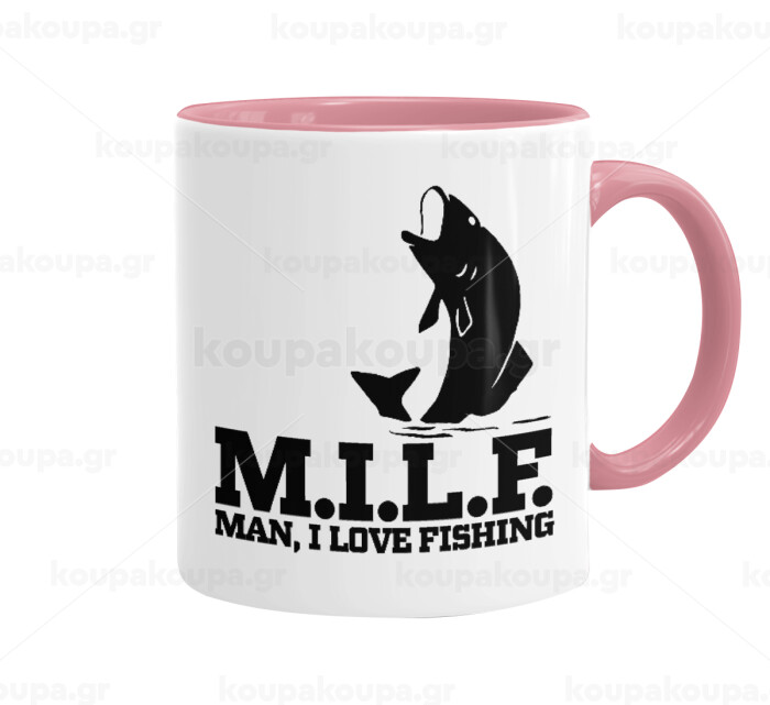 M.I.L.F. Mam i love fishing, Κούπα χρωματιστή ροζ, κεραμική, 330ml