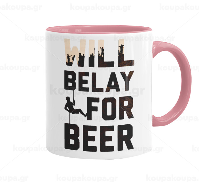 Will Belay For Beer, Κούπα χρωματιστή ροζ, κεραμική, 330ml