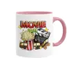 Movie night, Κούπα χρωματιστή ροζ, κεραμική, 330ml